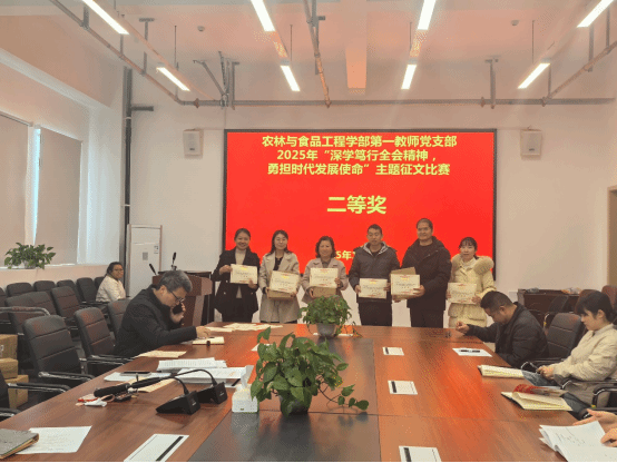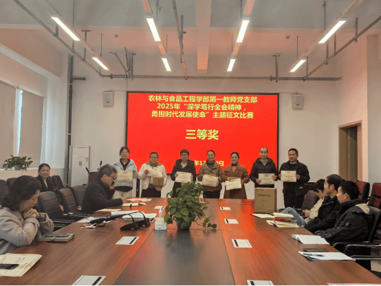 此次征文比赛正是党支部创新学习形式、深化学习成效的重要举措,自启动以来便得到党支部教师的积极响应,共收到参赛作品30篇。参赛教师紧扣全会提出的“教育强国、科技强国、人才强国”“加快农业农村现代化”“培育新质生产力”等核心部署,结合学部在固态发酵、精制川茶、特色农林资源利用等领域的办学特色与科研实践,将理论感悟与教学科研工作深度融合。征文中既有对“十五五”时期农林食品产业发展蓝图的前瞻性思考,也有扎根川南大地服务乡村振兴的实践案例剖析,更有立足三尺讲台落实立德树人根本任务的初心表达,充分展现了学部教师深厚的理论素养与强烈的使命担当。经过初评、复评的严格筛选,确定一等奖5名、二等奖10名、三等奖15名。党支部为获奖教师统一颁发荣誉证书。