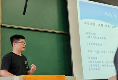 会上,刘华涛老师首先介绍了本次野外实习的目的和重要意义,并从实习时间分配及项目、植物学和动物学的实习内容、实习安排及安全注意事项等方面进行了详细说明。接着,往届学长学姐向同学们分享她们的实习经验以及野外实习所需工具等,期间同学们积极提问,现场气氛热烈。