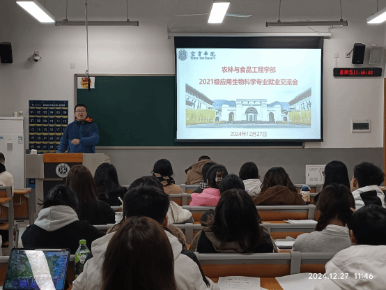 为深入贯彻落实习近平总书记来校视察指示精神,切实做好应用生物科学专业毕业生就业工作,12月27日,应用生物科学教研室召开了2025届毕业生就业交流会。应用生物科学专业部分教师代表、2025届全体学生参会。会议由教研室主任张力天博士主持。