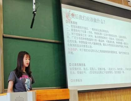 会上,刘华涛老师首先介绍了本次野外实习的目的和重要意义,并从实习时间分配及项目、植物学和动物学的实习内容、实习安排及安全注意事项等方面进行了详细说明。接着,往届学长学姐向同学们分享她们的实习经验以及野外实习所需工具等,期间同学们积极提问,现场气氛热烈。